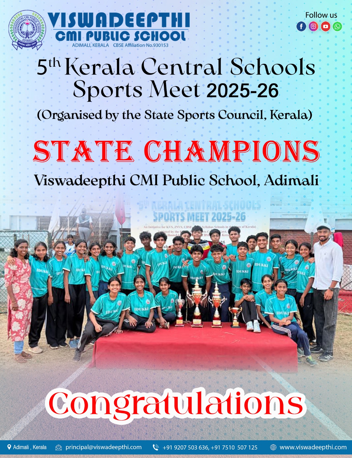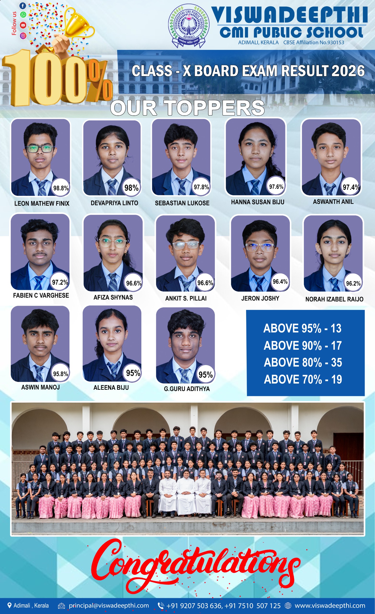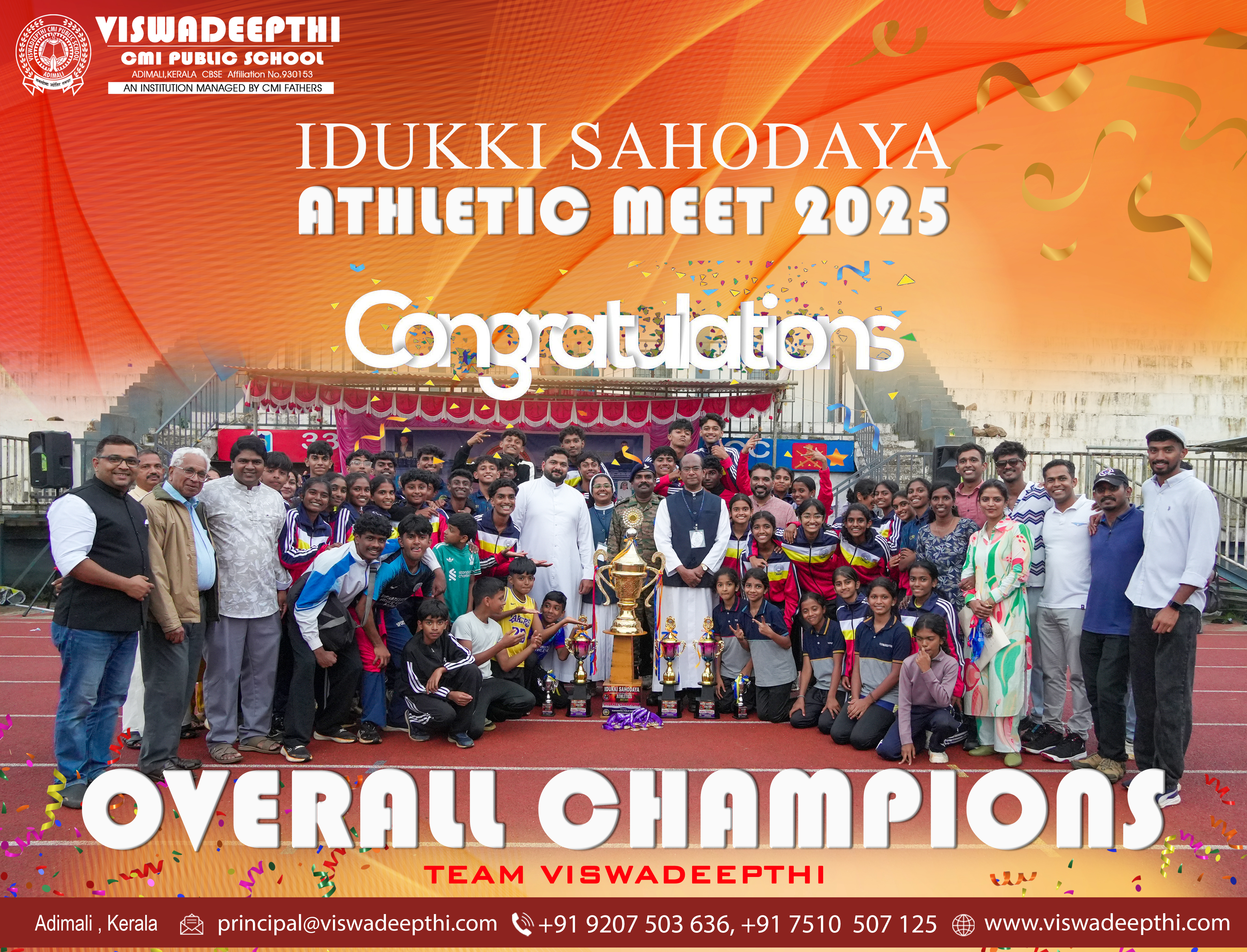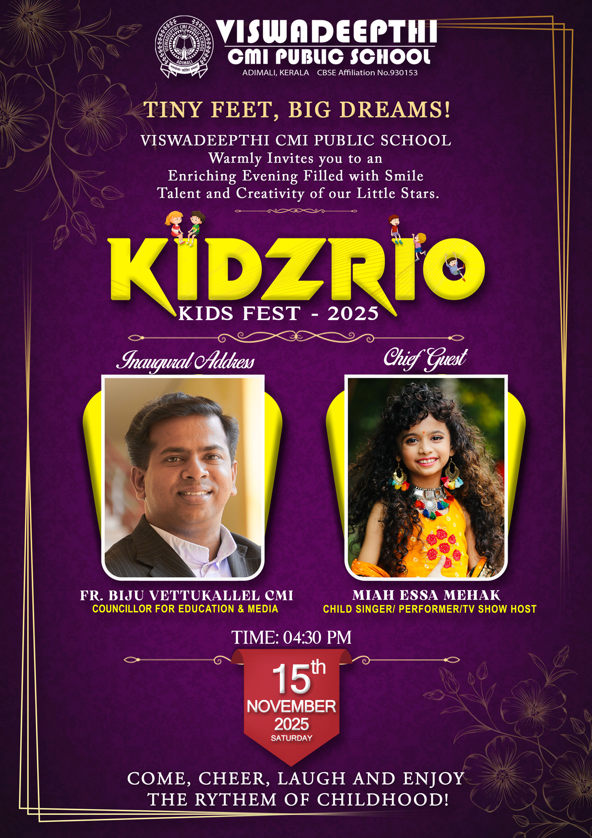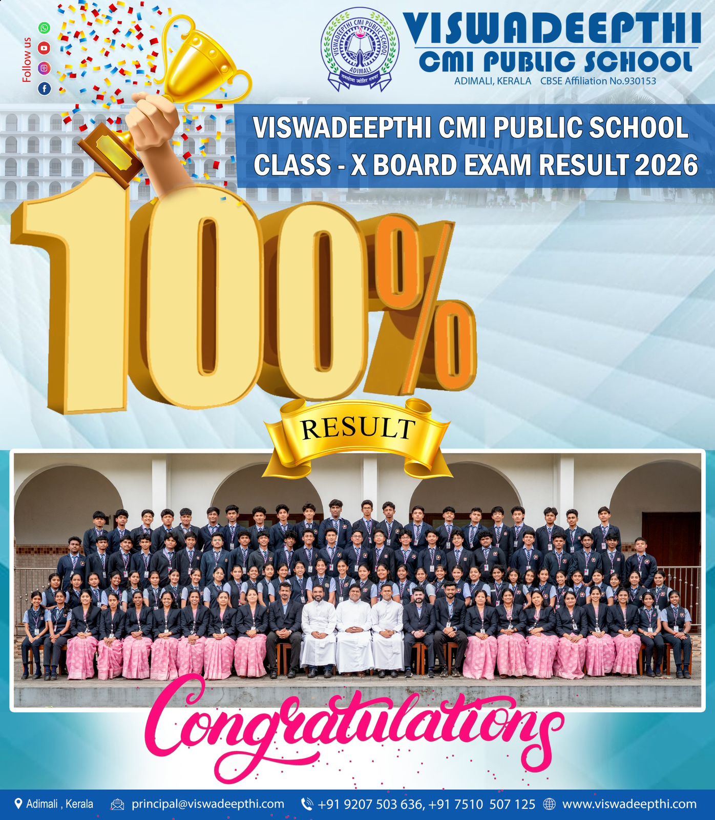 Envisioned and established by the Fathers of the Carmel Province of the Carmelites of Mary Immaculate (CMI), Viswadeepthi Public School is a co-educational institution, following the CBSE syllabus. This minority institution, run by CMI Fathers of Carmel Province, Muvattupuzha, was the realization of the long cherished dream for quality education of the people in and around Adimali. Set in a serene atmosphere, Viswadeepthi Public School is an artistically designed edifice, equipped and provided with ample facilities for work, play and recreation. Manned by a team of professionally trained, competent, devoted and dedicated teachers under the overall supervision of the CMI Fathers, the school really is an extension of their homes.